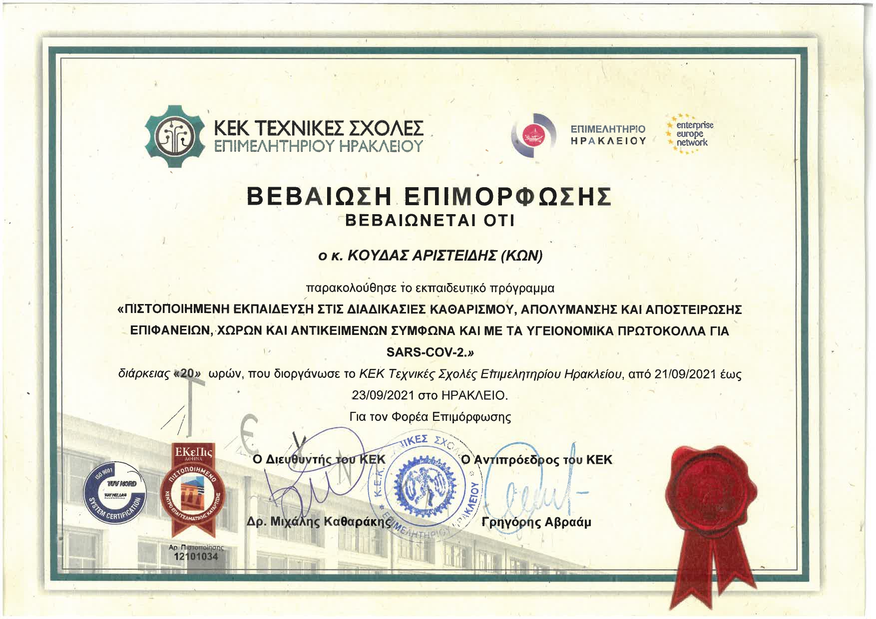 Χρησιμοποιούμε πιστοποιημένα, βιοδιασπώμενα προϊόντα φιλικά προς την υγεία και το περιβάλλον.